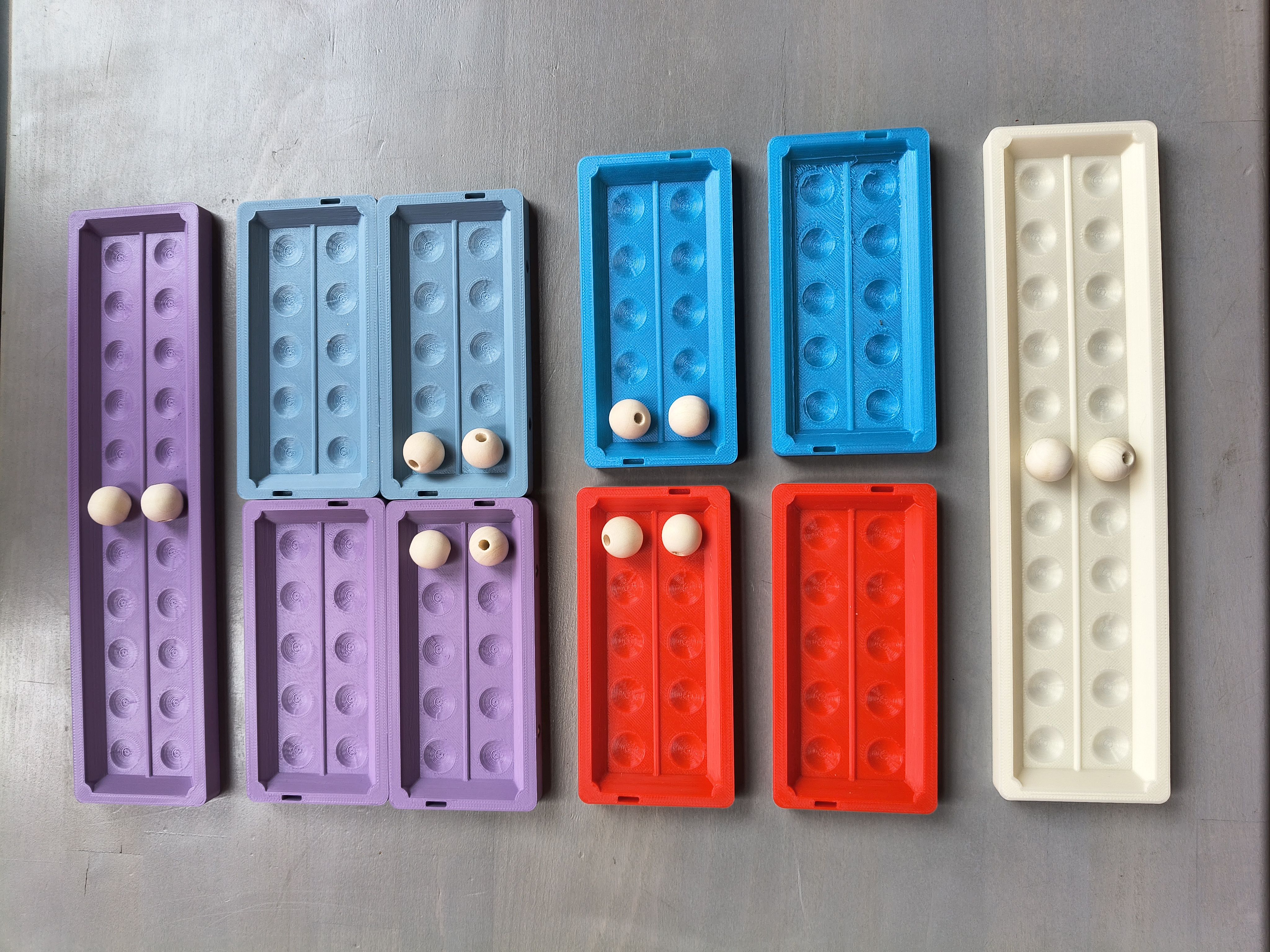 Bestemshe, Toguz nebo Mangala? Sestavte si desku na hru, kterou zrovna chcete hrát. 3D tisk. Barvy k dispozici viz obr. Celá souprava má 18ks malých důlků